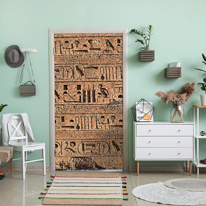 Entdecke die Türtapete Ägyptische Hieroglyphen auf einer alten Mauer