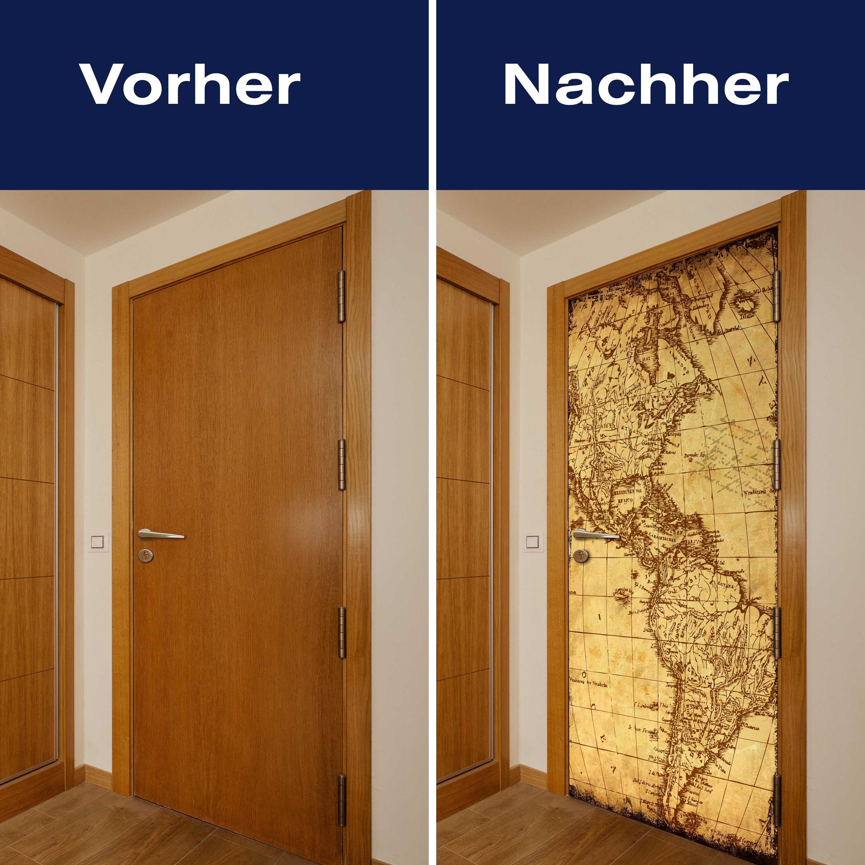 Hast du jemals darüber nachgedacht, wie eine einfache Veränderung deinen Wohnraum komplett umgestalten kann? Die Türtapete alte Karte von Amerika, Vintage, Retro von Wandmotiv24 ist genau das, was du brauchst, um deinem Zuhause einen Hauch von Einzigartigkeit und Stil zu verleihen. Dieses einzigartige Design erzielt eine atemberaubende visuelle Wirkung, die jeden Betrachter in den Bann zieht.