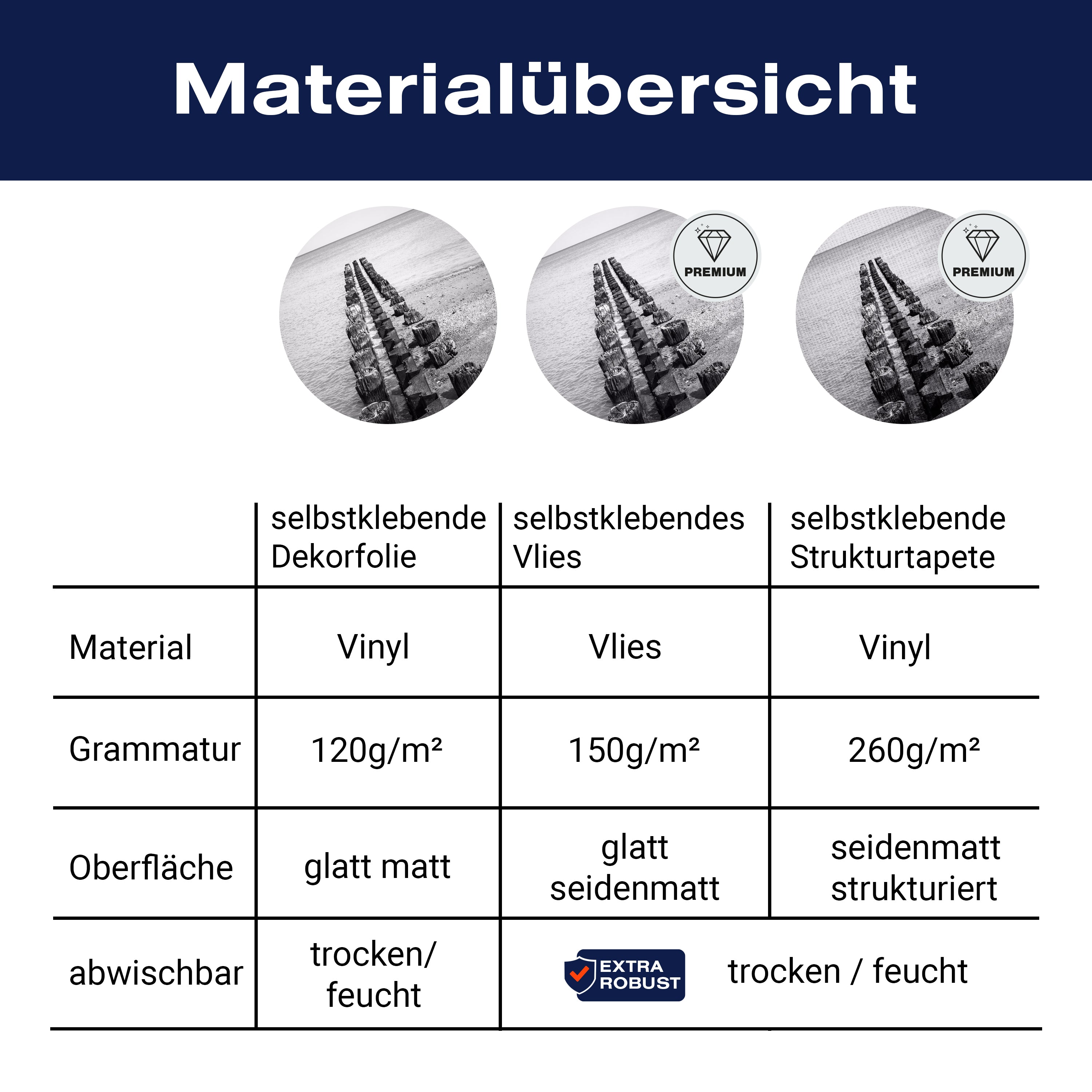 Sag ade zu komplizierten Anbringungsprozessen. Unsere Türtapeten, verfügbar in den Größen von 70x200 cm bis 100x200 cm, ermöglichen eine kinderleichte Installation. Wähle zwischen selbstklebender Dekorfolie, Vlies 150g oder Strukturtapete 260g, um deinem Zuhause einen Hauch von Eleganz zu verleihen.