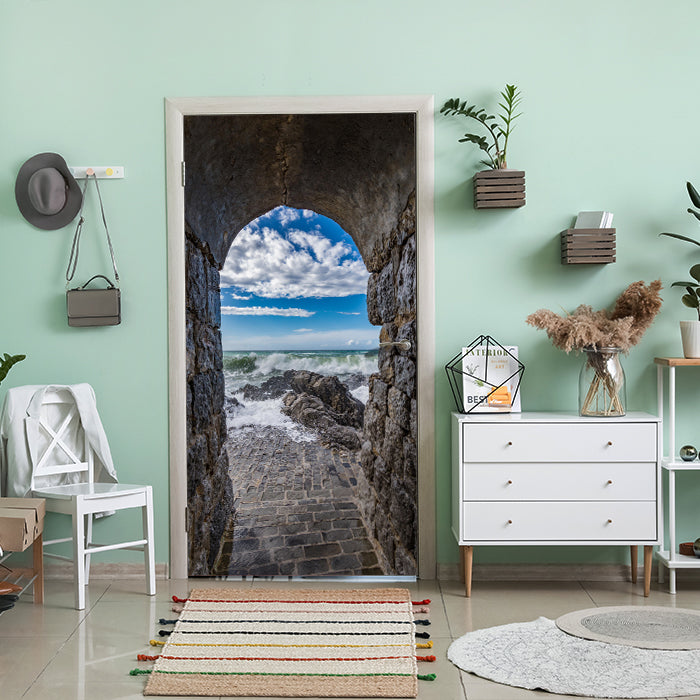 Entdecke die Türtapete Aussicht aus Tunnel aufs Meer, Wellen