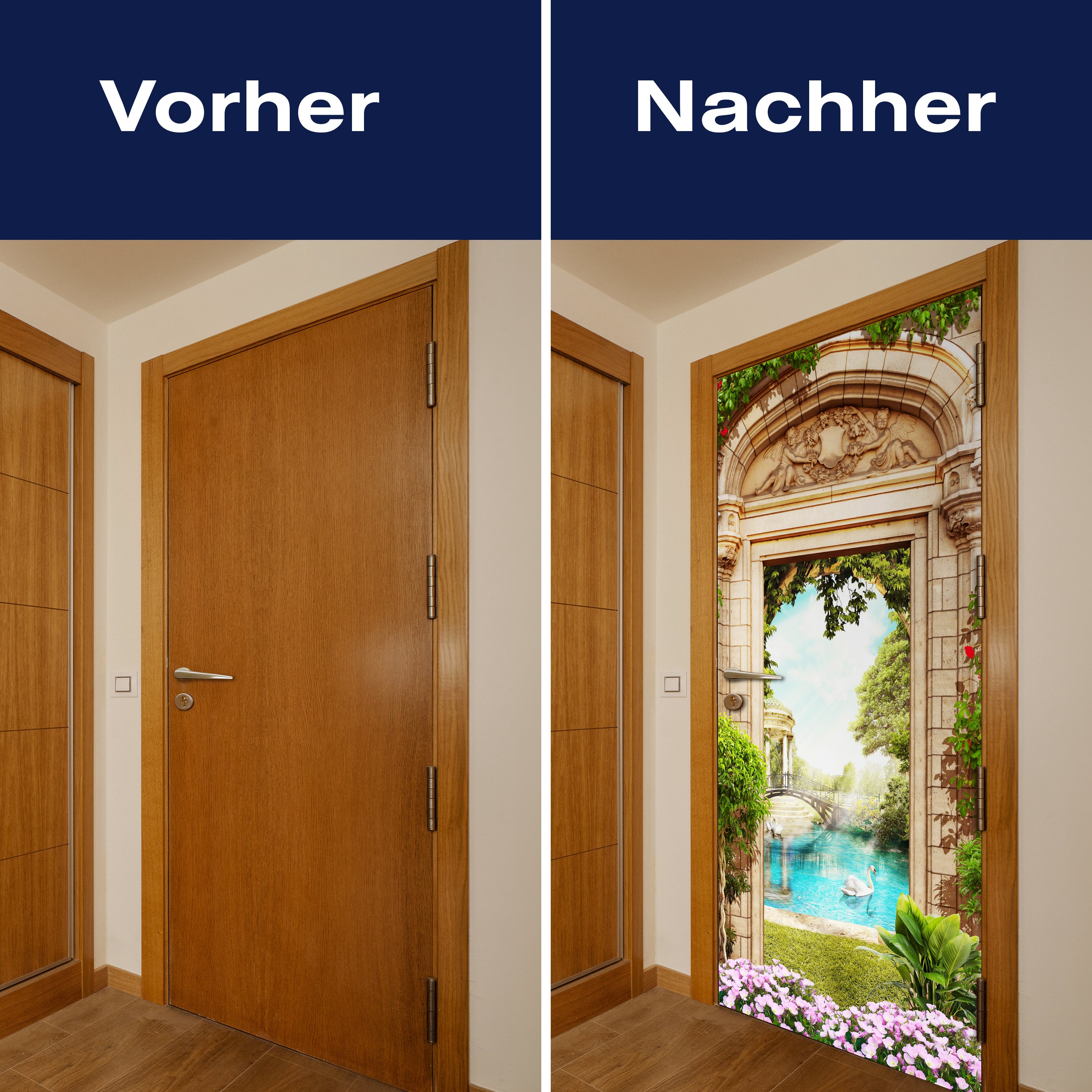 Hast du jemals darüber nachgedacht, wie eine einfache Veränderung deinen Wohnraum komplett umgestalten kann? Die Türtapete Blick in Park, Schwan, Teich, Brücke von Wandmotiv24 ist genau das, was du brauchst, um deinem Zuhause einen Hauch von Einzigartigkeit und Stil zu verleihen. Dieses einzigartige Design erzielt eine atemberaubende visuelle Wirkung, die jeden Betrachter in den Bann zieht.