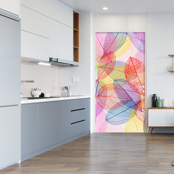 Entdecke die Türtapete bunte Blätter, Blatt Skelett, Pflanzen