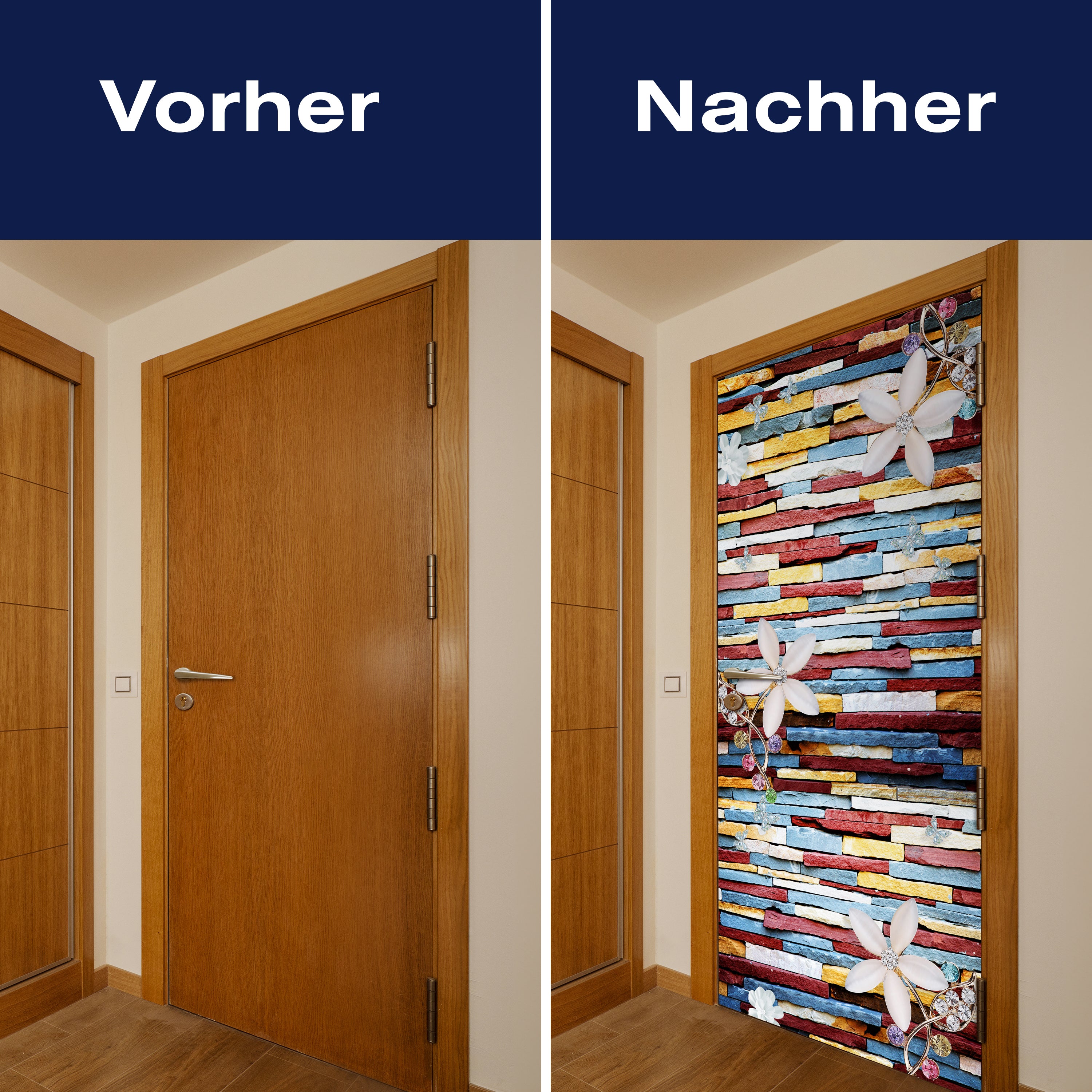 Mit unserer Türtapete verwandelst du jede gewöhnliche Tür in ein Kunstwerk. Ob du die Atmosphäre deines Wohnraums aufwerten oder deinem Haus einen neuen Charakter verleihen möchtest, unsere Türtapeten bieten eine einzigartige Möglichkeit, Veränderung zu gestalten. Lass dich von der Einfachheit der Anwendung begeistern und erlebe, wie deine Räume durch die Kraft des Designs und der Farbe transformiert werden.