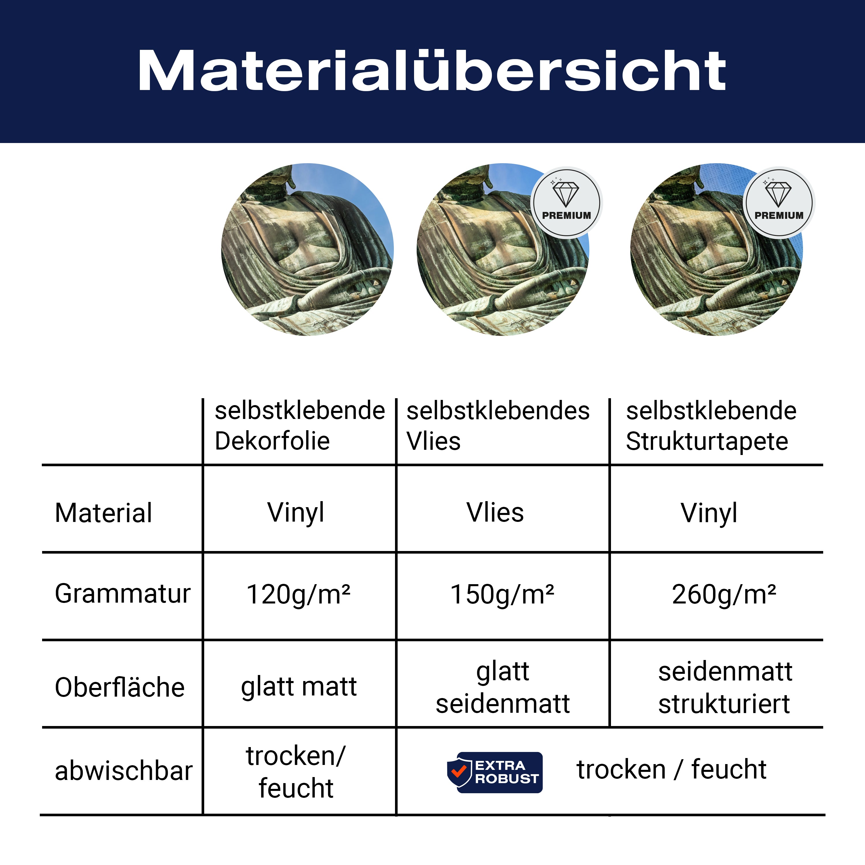 Sag ade zu komplizierten Anbringungsprozessen. Unsere Türtapeten, verfügbar in den Größen von 70x200 cm bis 100x200 cm, ermöglichen eine kinderleichte Installation. Wähle zwischen selbstklebender Dekorfolie, Vlies 150g oder Strukturtapete 260g, um deinem Zuhause einen Hauch von Eleganz zu verleihen.