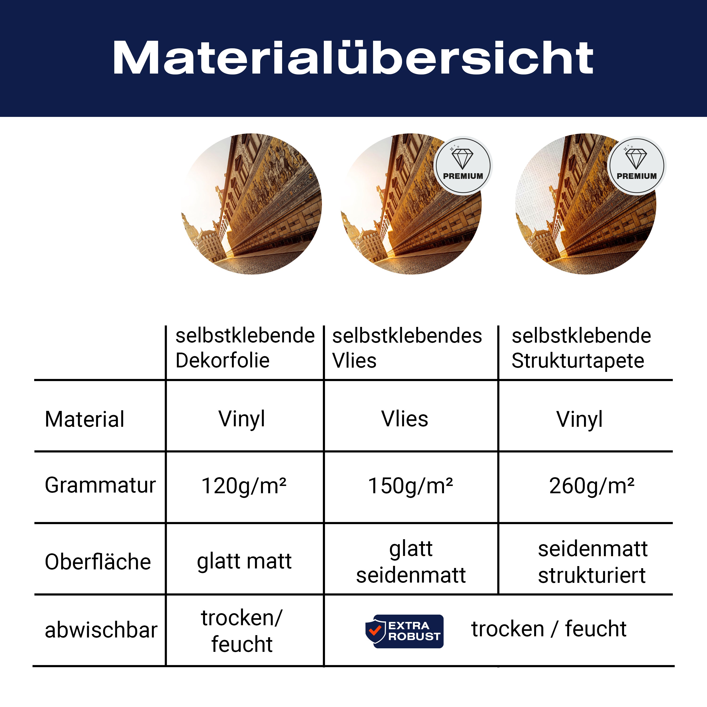 Sag ade zu komplizierten Anbringungsprozessen. Unsere Türtapeten, verfügbar in den Größen von 70x200 cm bis 100x200 cm, ermöglichen eine kinderleichte Installation. Wähle zwischen selbstklebender Dekorfolie, Vlies 150g oder Strukturtapete 260g, um deinem Zuhause einen Hauch von Eleganz zu verleihen.