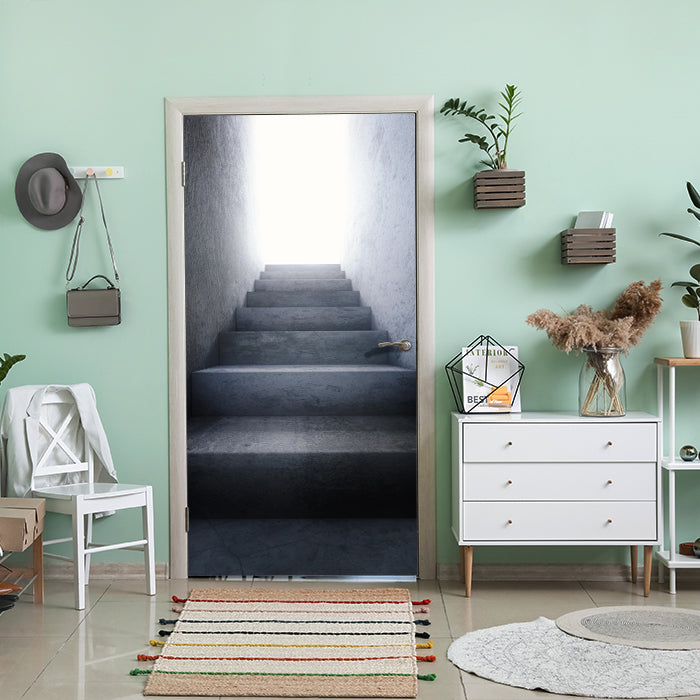 Entdecke die Türtapete Dunkle Treppe ins Licht, Treppen-stufen