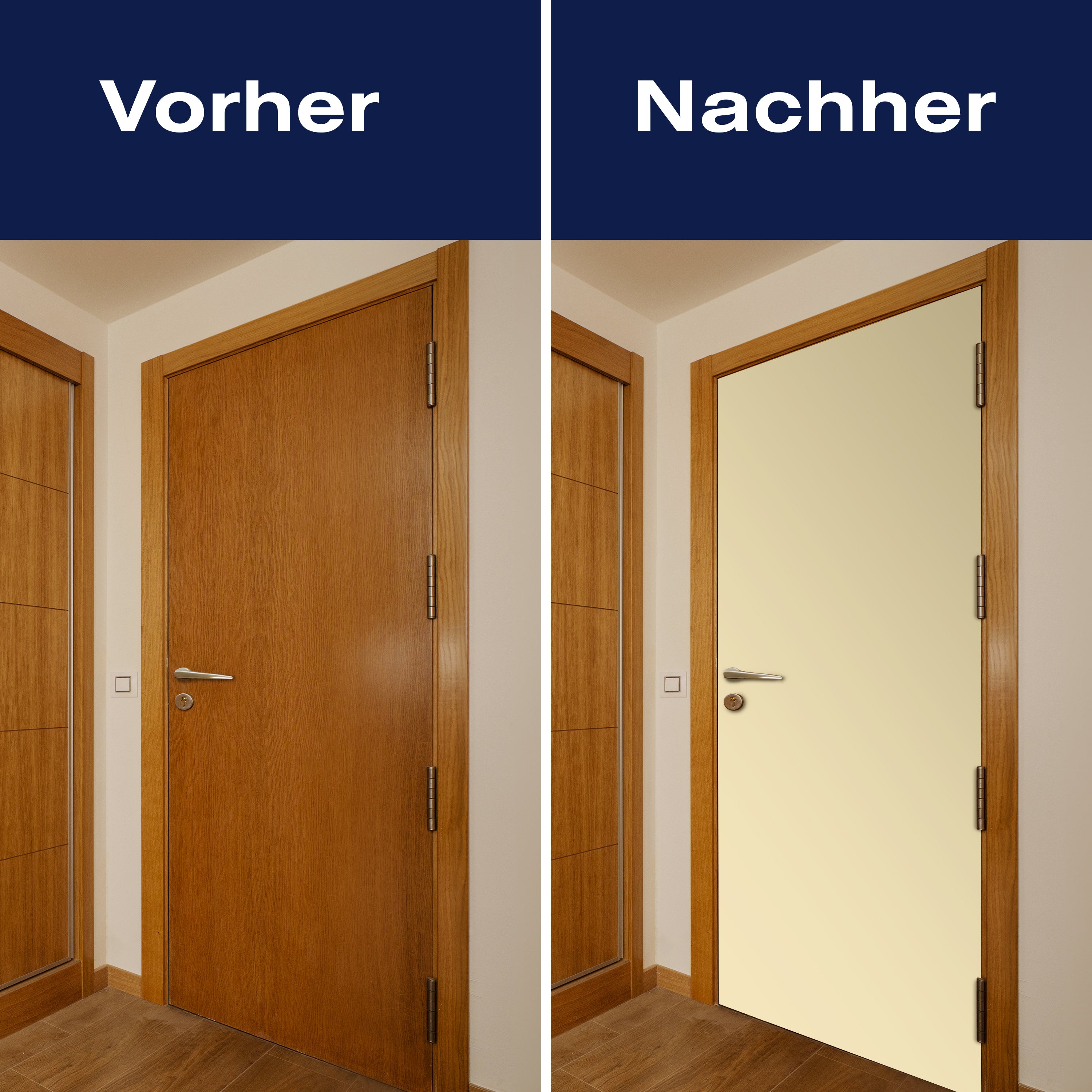 - Drücke die Kanten und Ecken der Türfolie vorsichtig an, um sicherzustellen, dass sie gut haften und keine Ablösungen entstehen.