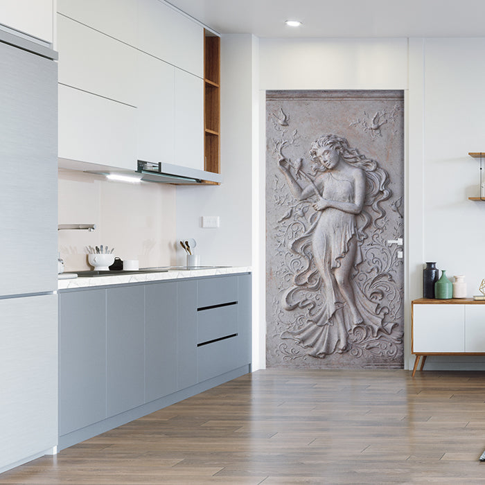 Entdecke die Türtapete Frau & Vögel Figur, Wandbild, Stein