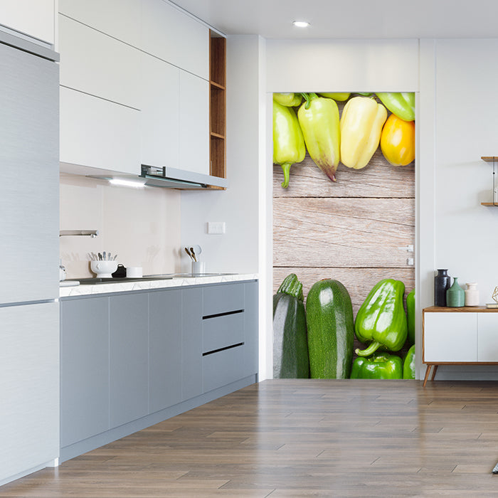 Entdecke die Türtapete Frischgemüse auf einem Holztisch