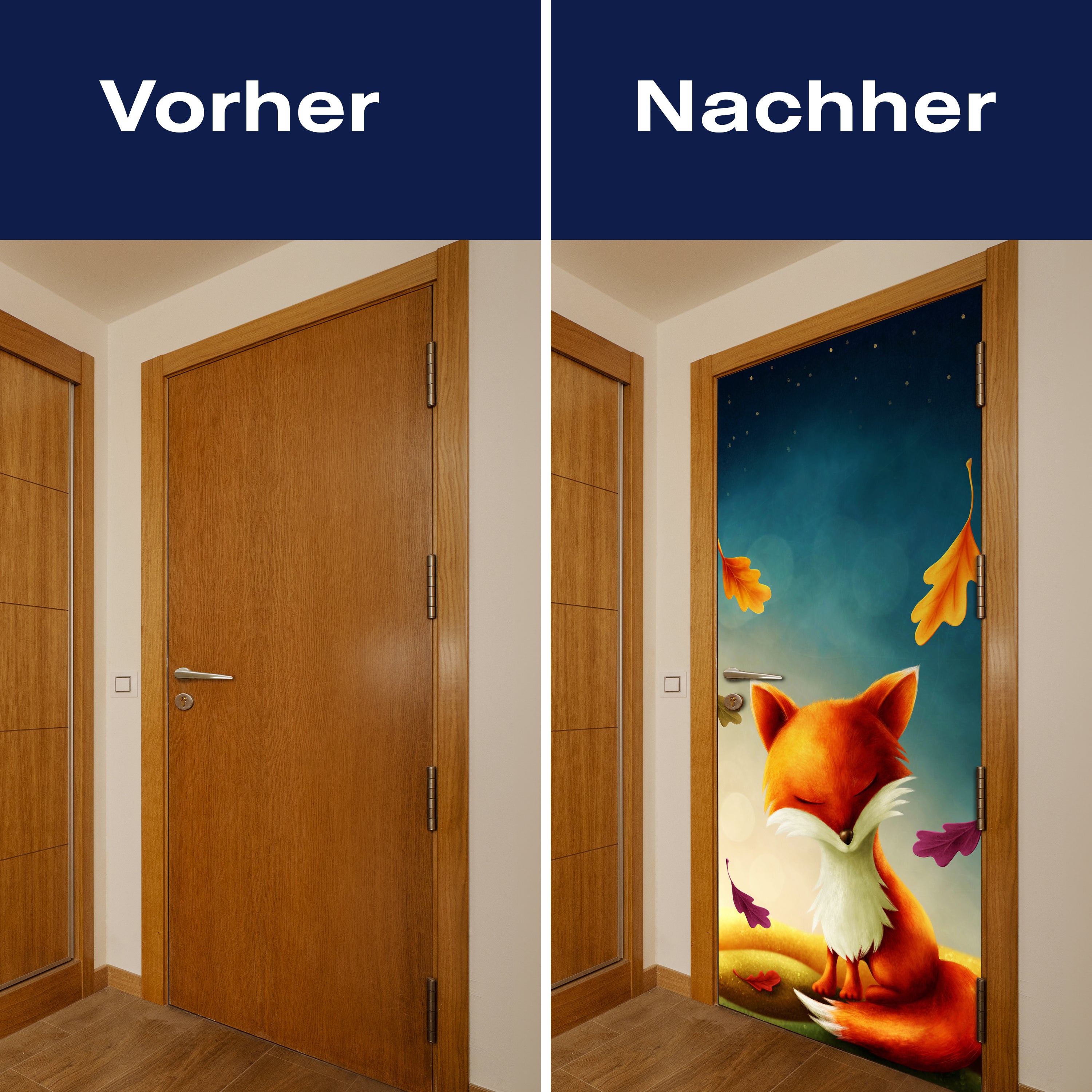 Hast du jemals darüber nachgedacht, wie eine einfache Veränderung deinen Wohnraum komplett umgestalten kann? Die Türtapete Fuchs im Herbst, Blätter, Sterne, Himmel von Wandmotiv24 ist genau das, was du brauchst, um deinem Zuhause einen Hauch von Einzigartigkeit und Stil zu verleihen. Dieses einzigartige Design erzielt eine atemberaubende visuelle Wirkung, die jeden Betrachter in den Bann zieht.