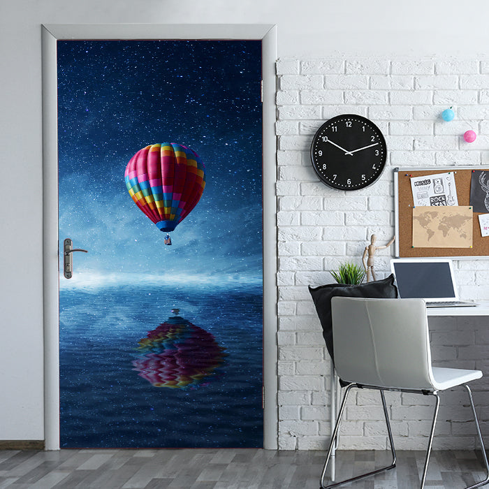 Entdecke die Türtapete Heißluftballon fliegt über ein dunkelblaues Meer