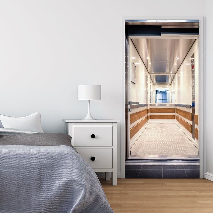 Entdecke die Türtapete heller Fahrstuhl, Spiegel, Lampen, Holz