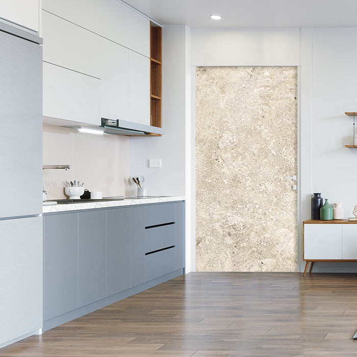 Entdecke die Türtapete heller Steinboden, Naturstein, Weiß