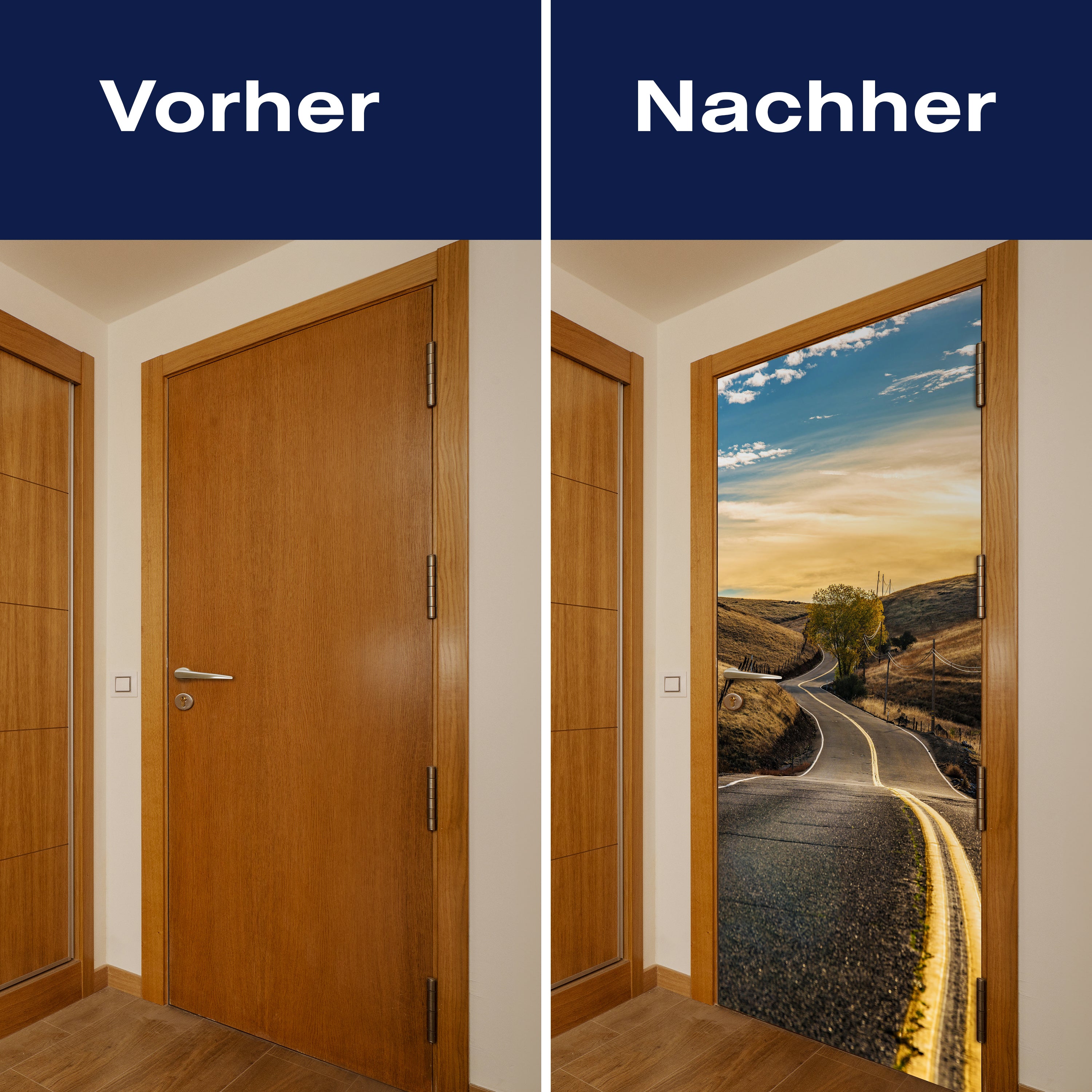 Mit unserer Türtapete verwandelst du jede gewöhnliche Tür in ein Kunstwerk. Ob du die Atmosphäre deines Wohnraums aufwerten oder deinem Haus einen neuen Charakter verleihen möchtest, unsere Türtapeten bieten eine einzigartige Möglichkeit, Veränderung zu gestalten. Lass dich von der Einfachheit der Anwendung begeistern und erlebe, wie deine Räume durch die Kraft des Designs und der Farbe transformiert werden.