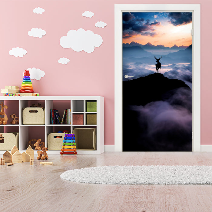 Entdecke die Türtapete Hirsch, Silhouette, Berge