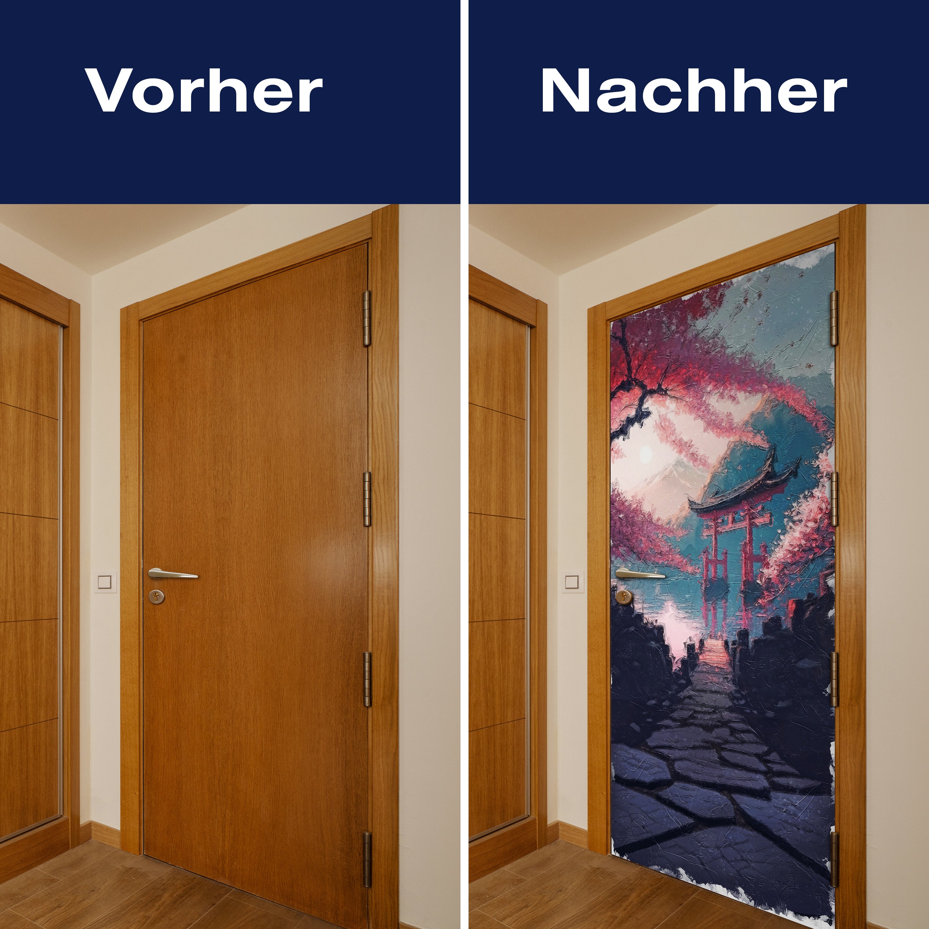 Mit unserer Türtapete verwandelst du jede gewöhnliche Tür in ein Kunstwerk. Ob du die Atmosphäre deines Wohnraums aufwerten oder deinem Haus einen neuen Charakter verleihen möchtest, unsere Türtapeten bieten eine einzigartige Möglichkeit, Veränderung zu gestalten. Lass dich von der Einfachheit der Anwendung begeistern und erlebe, wie deine Räume durch die Kraft des Designs und der Farbe transformiert werden.