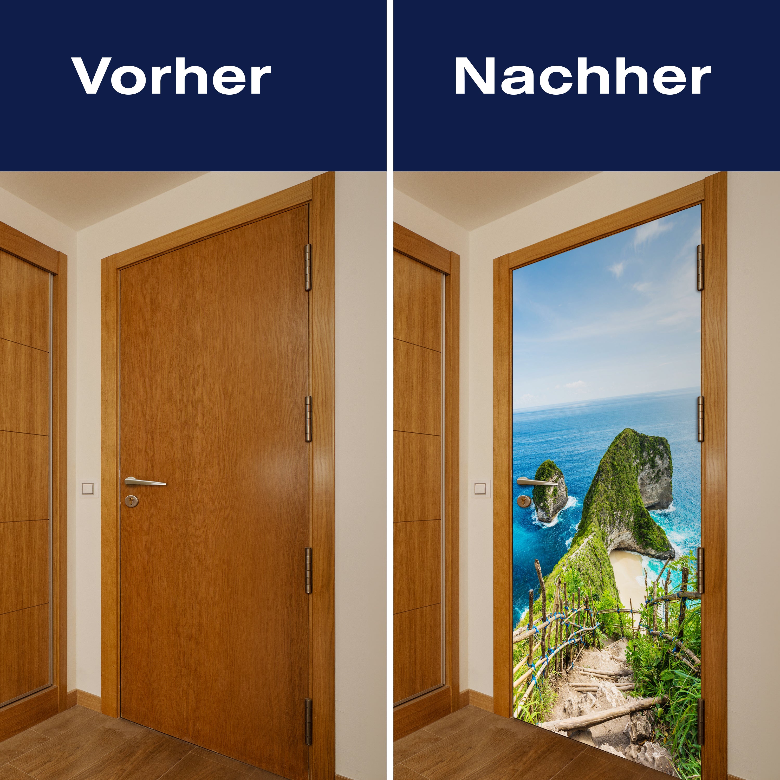 Mit unserer Türtapete verwandelst du jede gewöhnliche Tür in ein Kunstwerk. Ob du die Atmosphäre deines Wohnraums aufwerten oder deinem Haus einen neuen Charakter verleihen möchtest, unsere Türtapeten bieten eine einzigartige Möglichkeit, Veränderung zu gestalten. Lass dich von der Einfachheit der Anwendung begeistern und erlebe, wie deine Räume durch die Kraft des Designs und der Farbe transformiert werden.