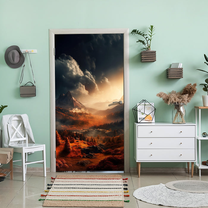 Entdecke die Türtapete Landschaft, Wald, Herbst, Berge