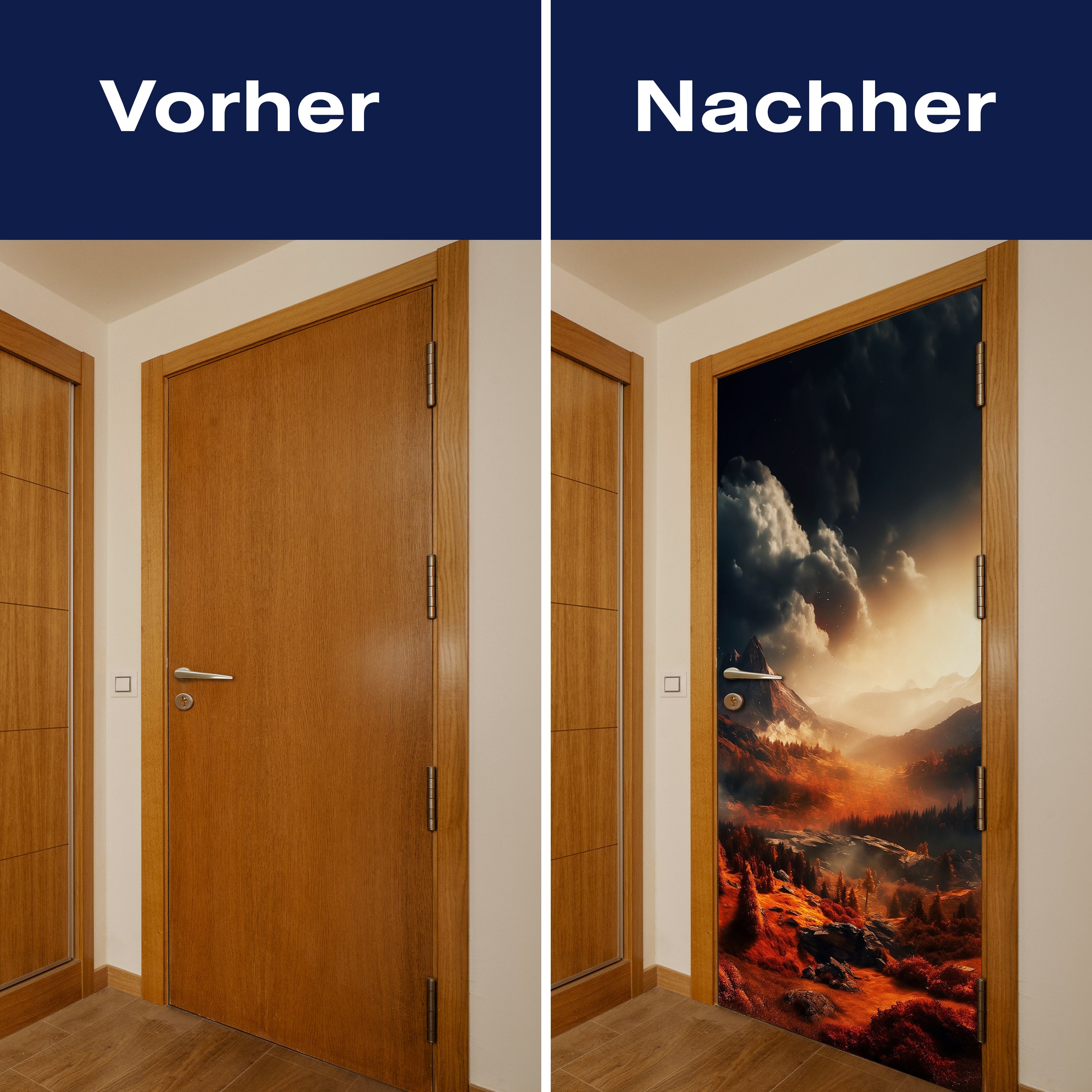 Mit unserer Türtapete verwandelst du jede gewöhnliche Tür in ein Kunstwerk. Ob du die Atmosphäre deines Wohnraums aufwerten oder deinem Haus einen neuen Charakter verleihen möchtest, unsere Türtapeten bieten eine einzigartige Möglichkeit, Veränderung zu gestalten. Lass dich von der Einfachheit der Anwendung begeistern und erlebe, wie deine Räume durch die Kraft des Designs und der Farbe transformiert werden.