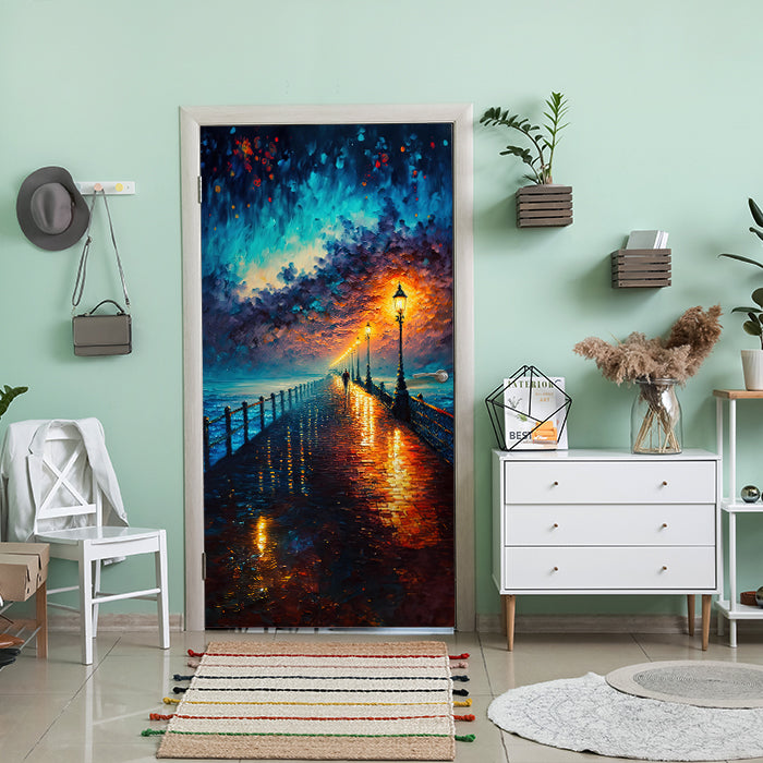 Entdecke die Türtapete Steg, Laternen, Nacht, Malerei
