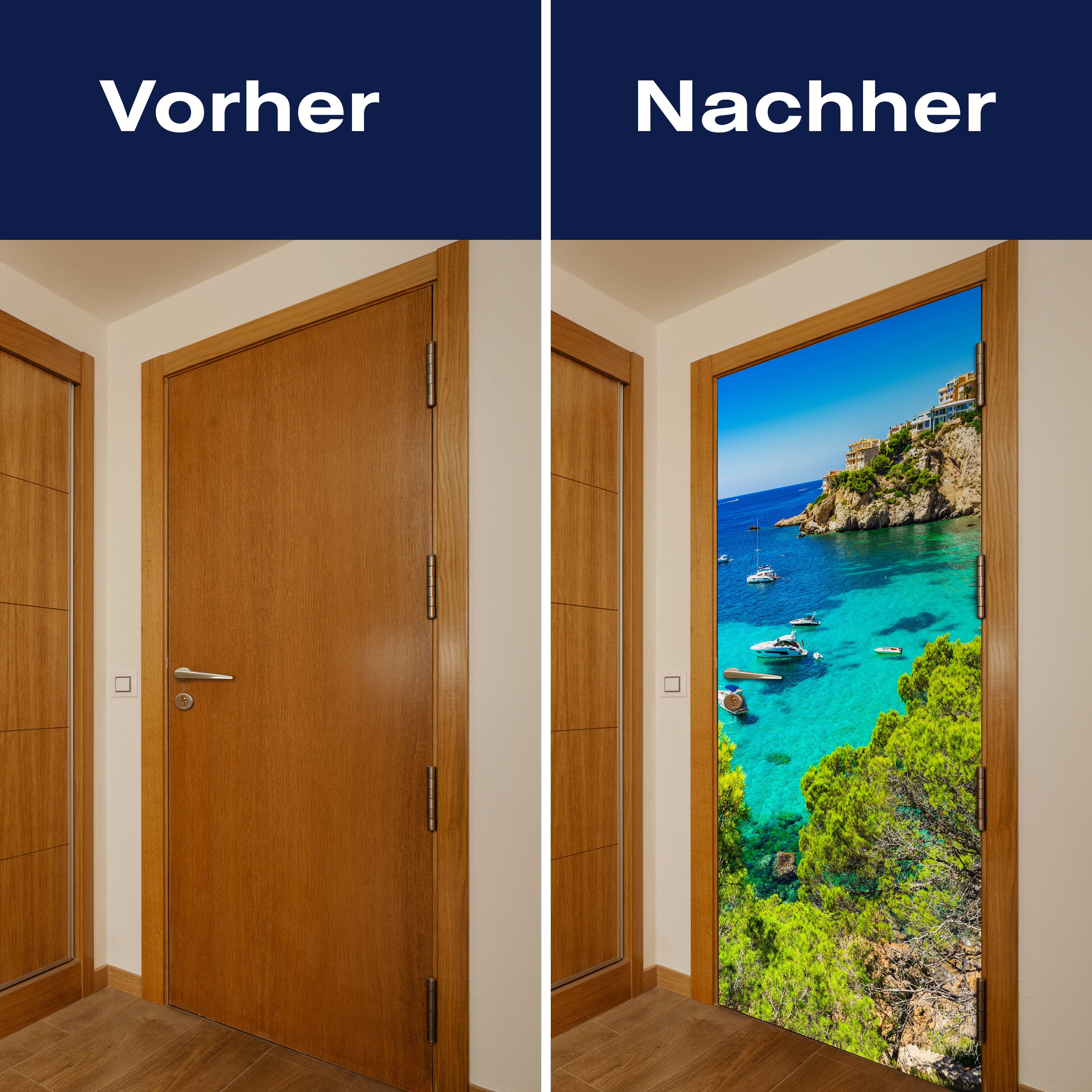 Hast du jemals darüber nachgedacht, wie eine einfache Veränderung deinen Wohnraum komplett umgestalten kann? Die Türtapete Meer, Boote, Felsen, Mallorca von Wandmotiv24 ist genau das, was du brauchst, um deinem Zuhause einen Hauch von Einzigartigkeit und Stil zu verleihen. Dieses einzigartige Design erzielt eine atemberaubende visuelle Wirkung, die jeden Betrachter in den Bann zieht.