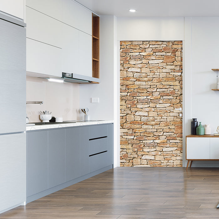 Entdecke die Türtapete Natursteinmauer Hell