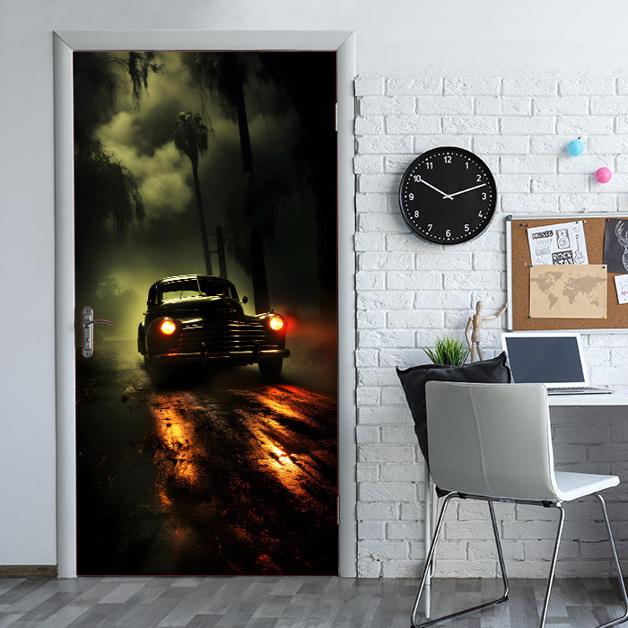 Türtapete Oldtimer, Nacht, Palmen M1476