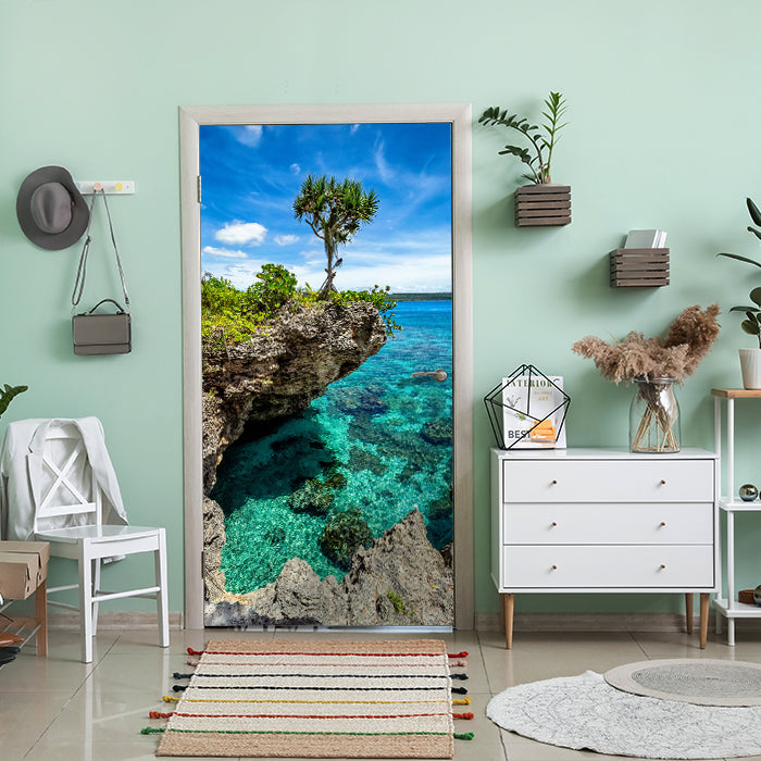 Entdecke die Türtapete Palme auf Fels-klippe, Meer, Ozean