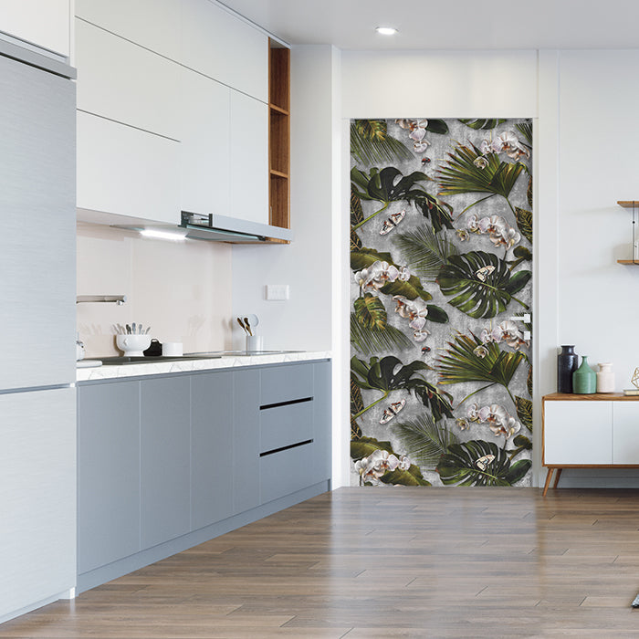 Türtapete Palmen Blätter, Blumen, Grunge Beton M1359