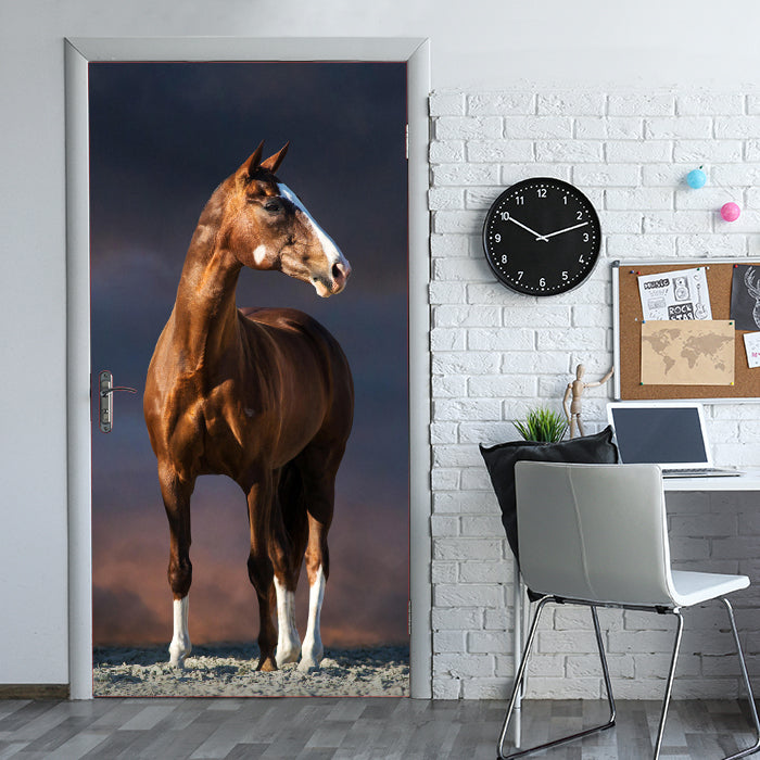 Entdecke die Türtapete Pferd auf Pfad, dunkle Wolken, Tiere