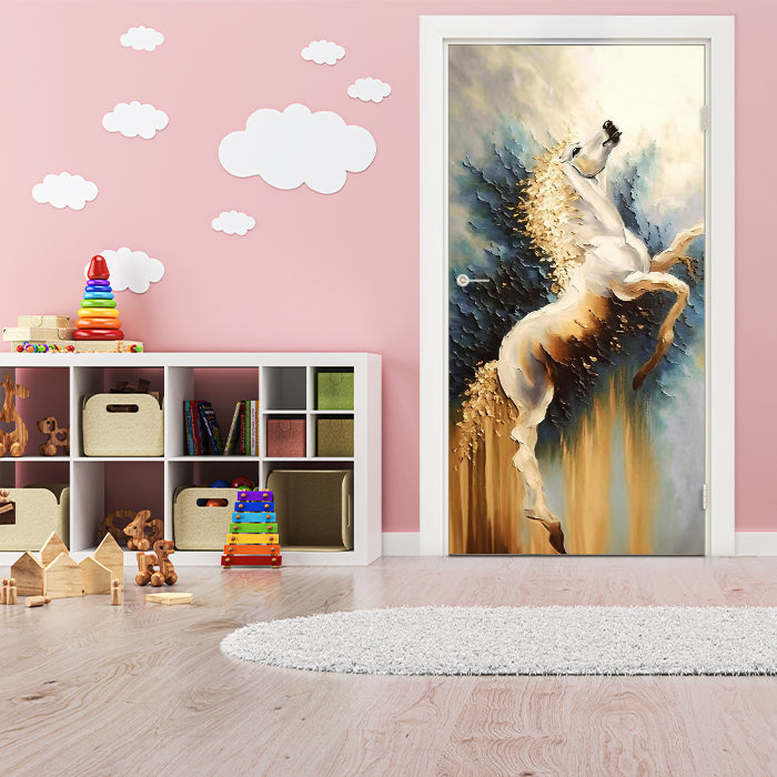 Entdecke die Türtapete weißes Pferd, Schimmel, Gemälde