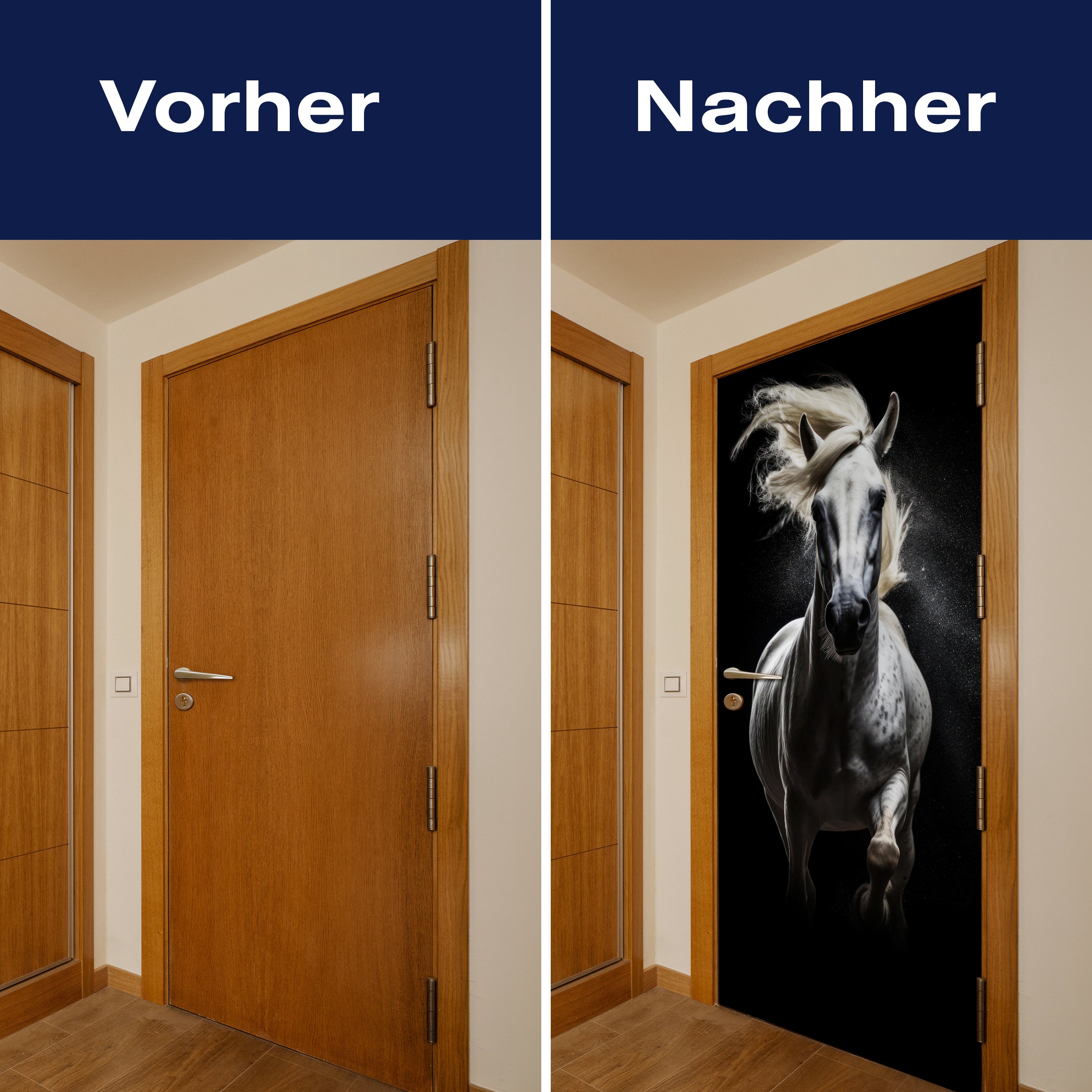 Hast du jemals darüber nachgedacht, wie eine einfache Veränderung deinen Wohnraum komplett umgestalten kann? Die Türtapete weißes Pferd, Schimmel von Wandmotiv24 ist genau das, was du brauchst, um deinem Zuhause einen Hauch von Einzigartigkeit und Stil zu verleihen. Dieses einzigartige Design erzielt eine atemberaubende visuelle Wirkung, die jeden Betrachter in den Bann zieht.