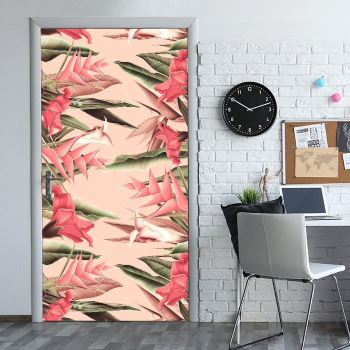 Entdecke die Türtapete Pflanzen Muster, Blumen, Blätter, Rosa