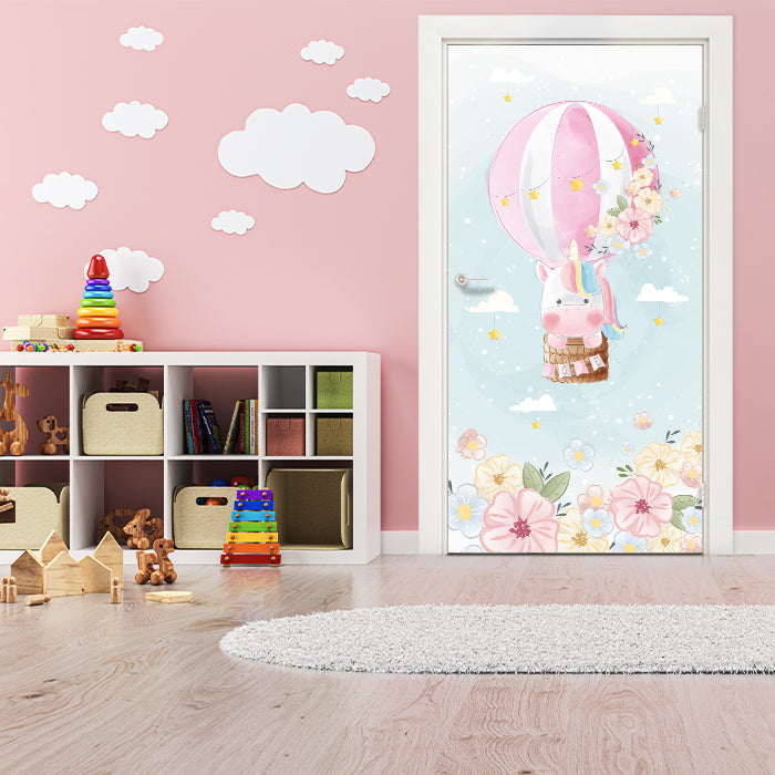 Entdecke die Türtapete Regenbogen Einhorn, Aquarell, Luftballon