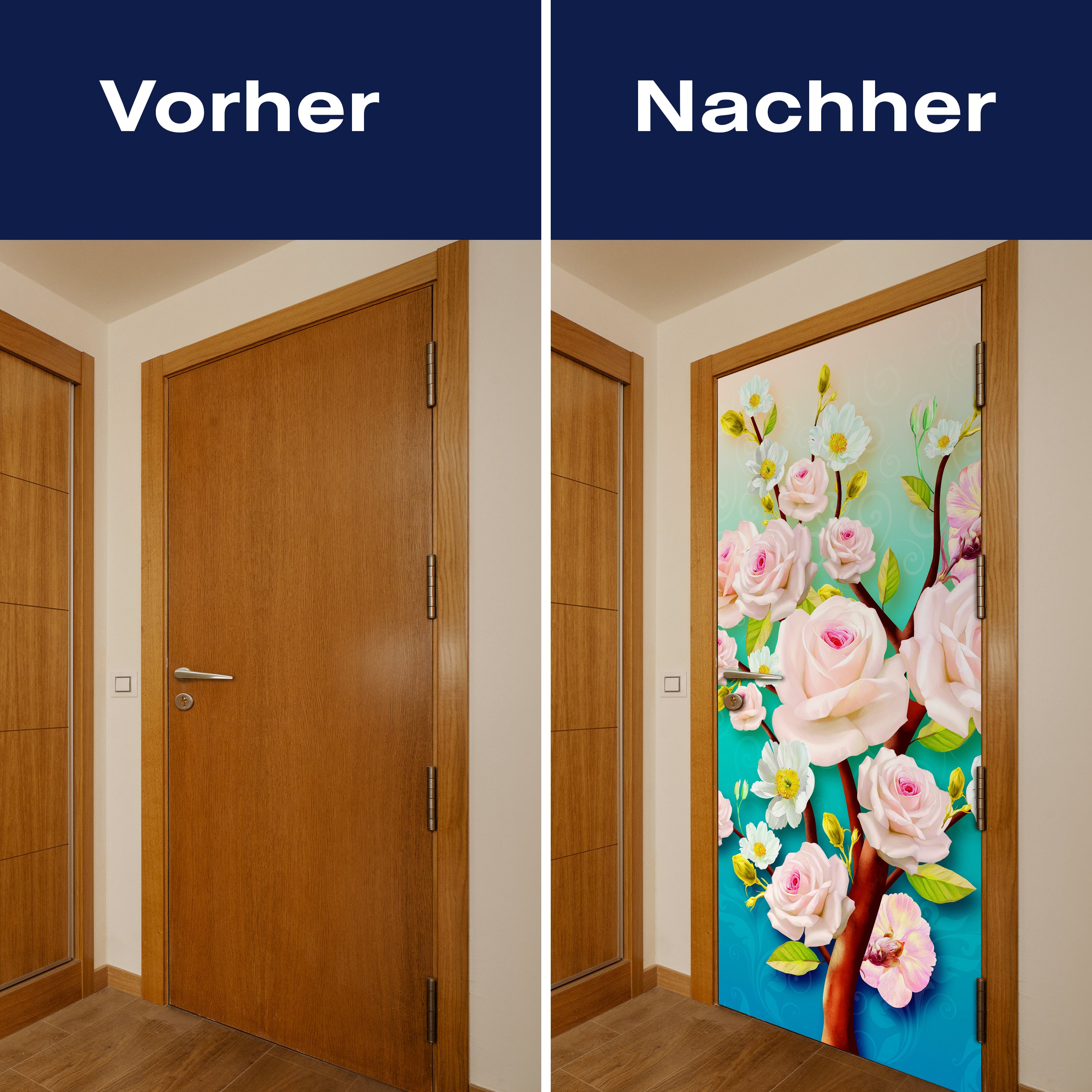Entdecke die Türtapete Rosen, Baum, Blüten