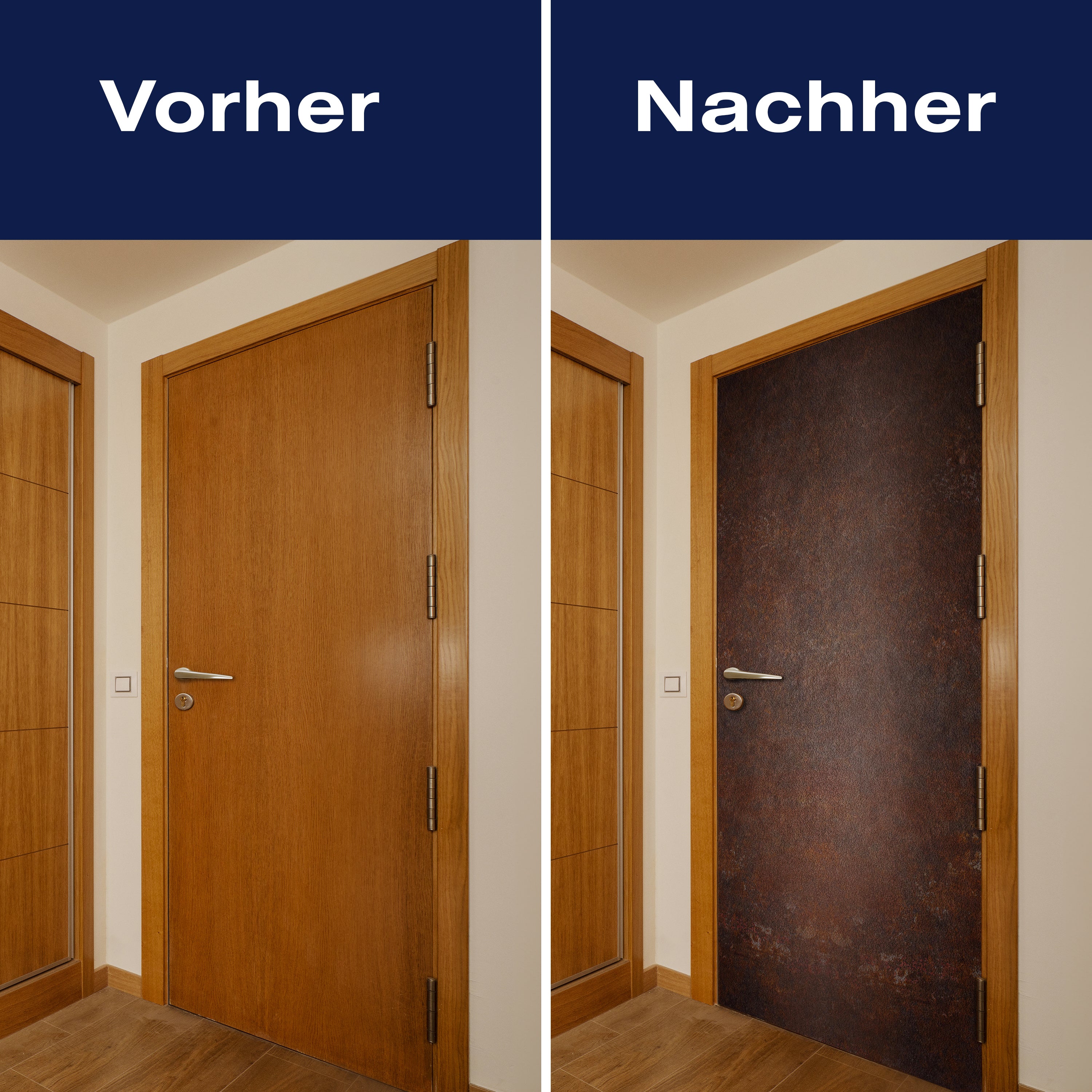 - Drücke die Kanten und Ecken der Türfolie vorsichtig an, um sicherzustellen, dass sie gut haften und keine Ablösungen entstehen.