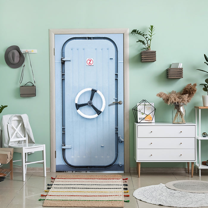 Entdecke die Türtapete Schiffs-schleuse Blau, Dreh-rad, Tür