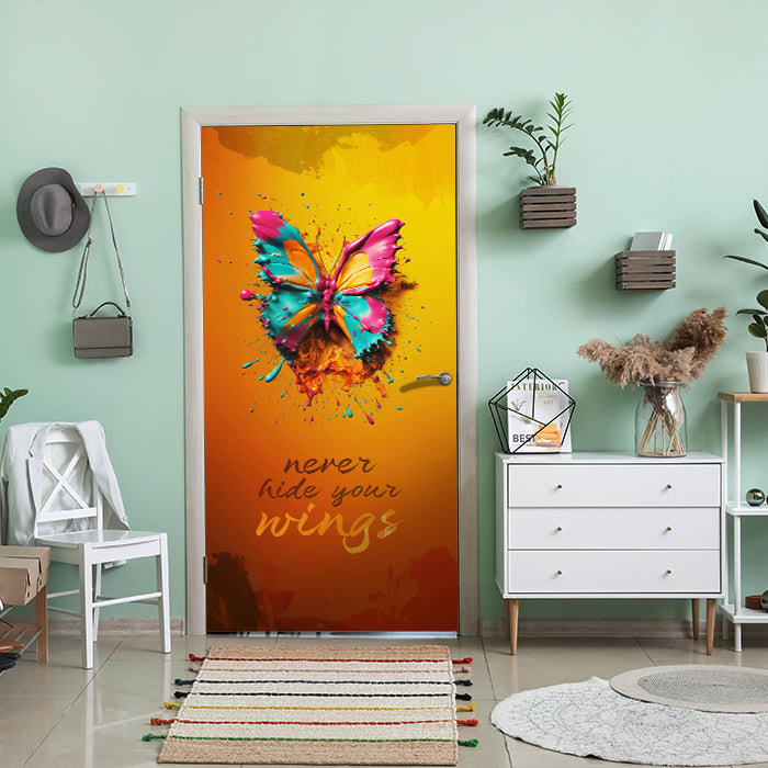 Entdecke die Türtapete Schmetterling, Spruch, Farbklecks