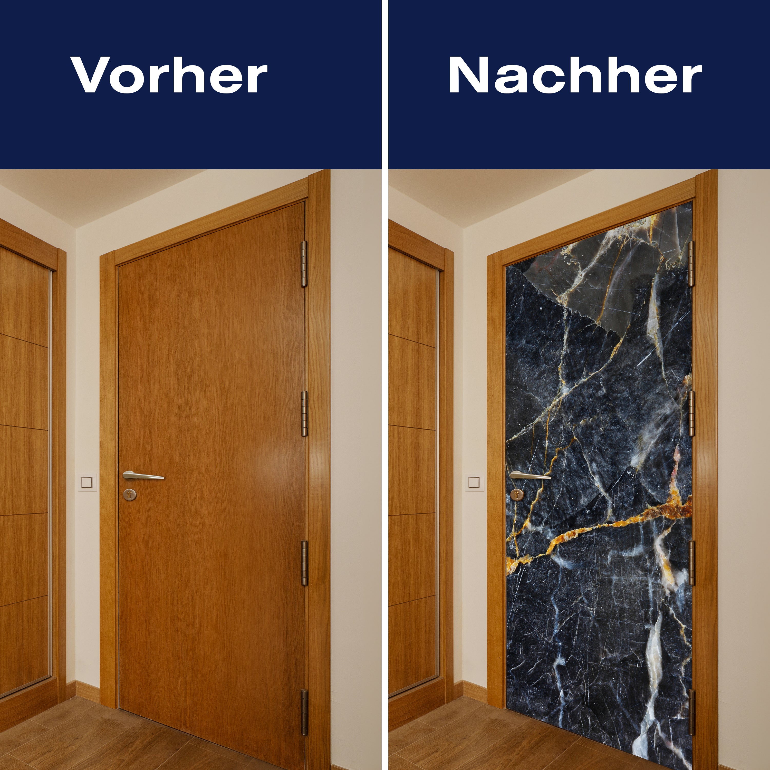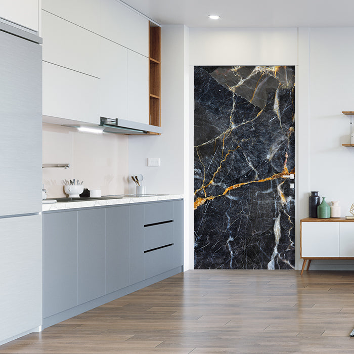 Entdecke die Türtapete Schwarzer Marmor, Gold, Weiß, Naturstein