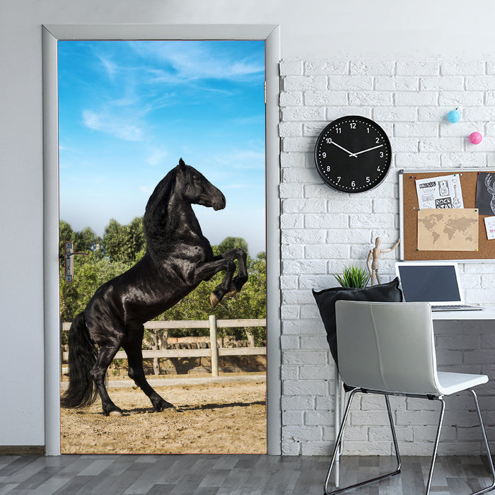 Entdecke die Türtapete Schwarzer Pferd steht auf Hinterbeinen