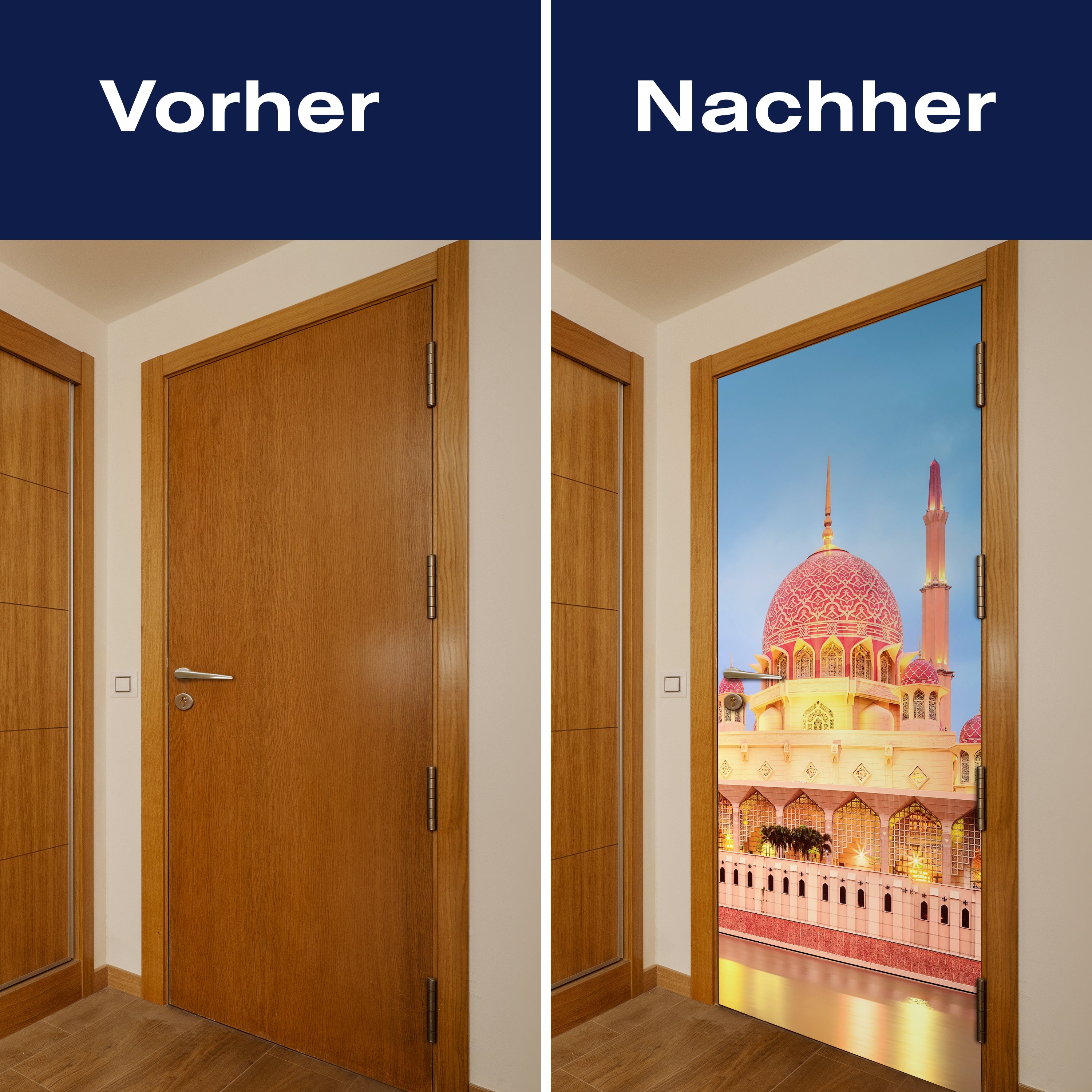 Hast du jemals darüber nachgedacht, wie eine einfache Veränderung deinen Wohnraum komplett umgestalten kann? Die Türtapete Sonnenuntergang über Putrajaya-Moschee von Wandmotiv24 ist genau das, was du brauchst, um deinem Zuhause einen Hauch von Einzigartigkeit und Stil zu verleihen. Dieses einzigartige Design erzielt eine atemberaubende visuelle Wirkung, die jeden Betrachter in den Bann zieht.