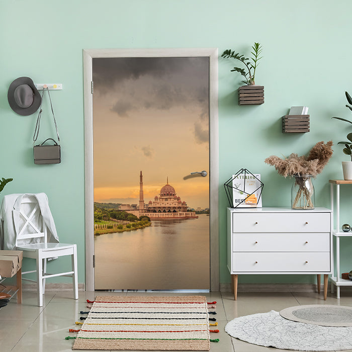 Entdecke die Türtapete Sonnenuntergang über Putrajaya-Moschee, Malaysia