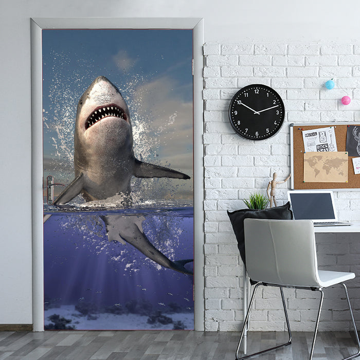 Hast du jemals darüber nachgedacht, wie eine einfache Veränderung deinen Wohnraum komplett umgestalten kann? Die Türtapete springender Hai, Unter-wasser, Raub-tier von Wandmotiv24 ist genau das, was du brauchst, um deinem Zuhause einen Hauch von Einzigartigkeit und Stil zu verleihen. Dieses einzigartige Design erzielt eine atemberaubende visuelle Wirkung, die jeden Betrachter in den Bann zieht.