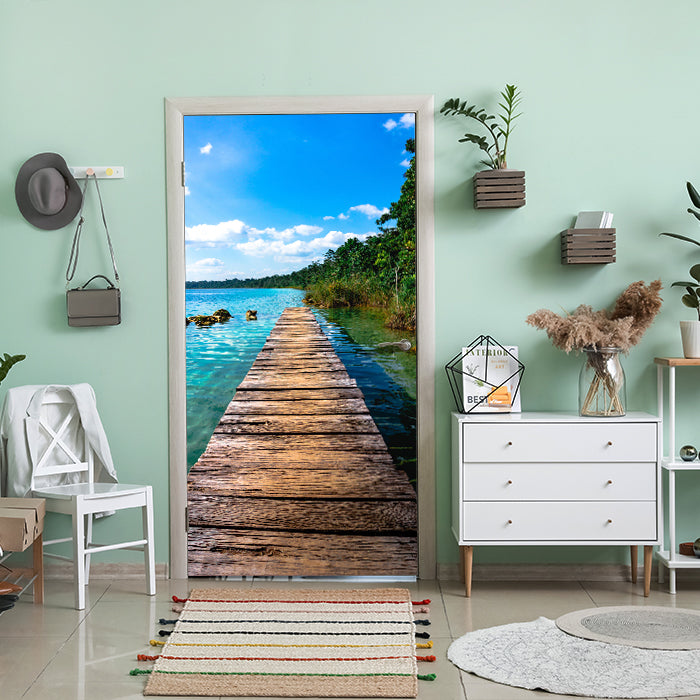 Entdecke die Türtapete Steg Wasser Wald Steine Holz