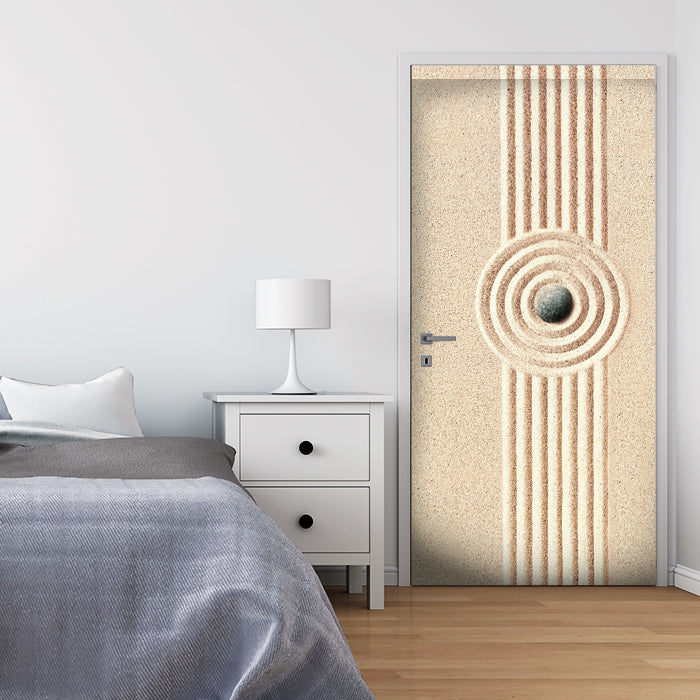 Entdecke die Türtapete Stein im Sand, Formen, Ringe, Linien