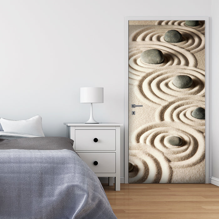 Entdecke die Türtapete Steine im Sand, Muster, Ringe, Formen