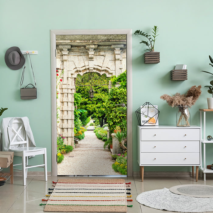 Entdecke die Türtapete Steintor im Garten, Pflanzen, Bäume