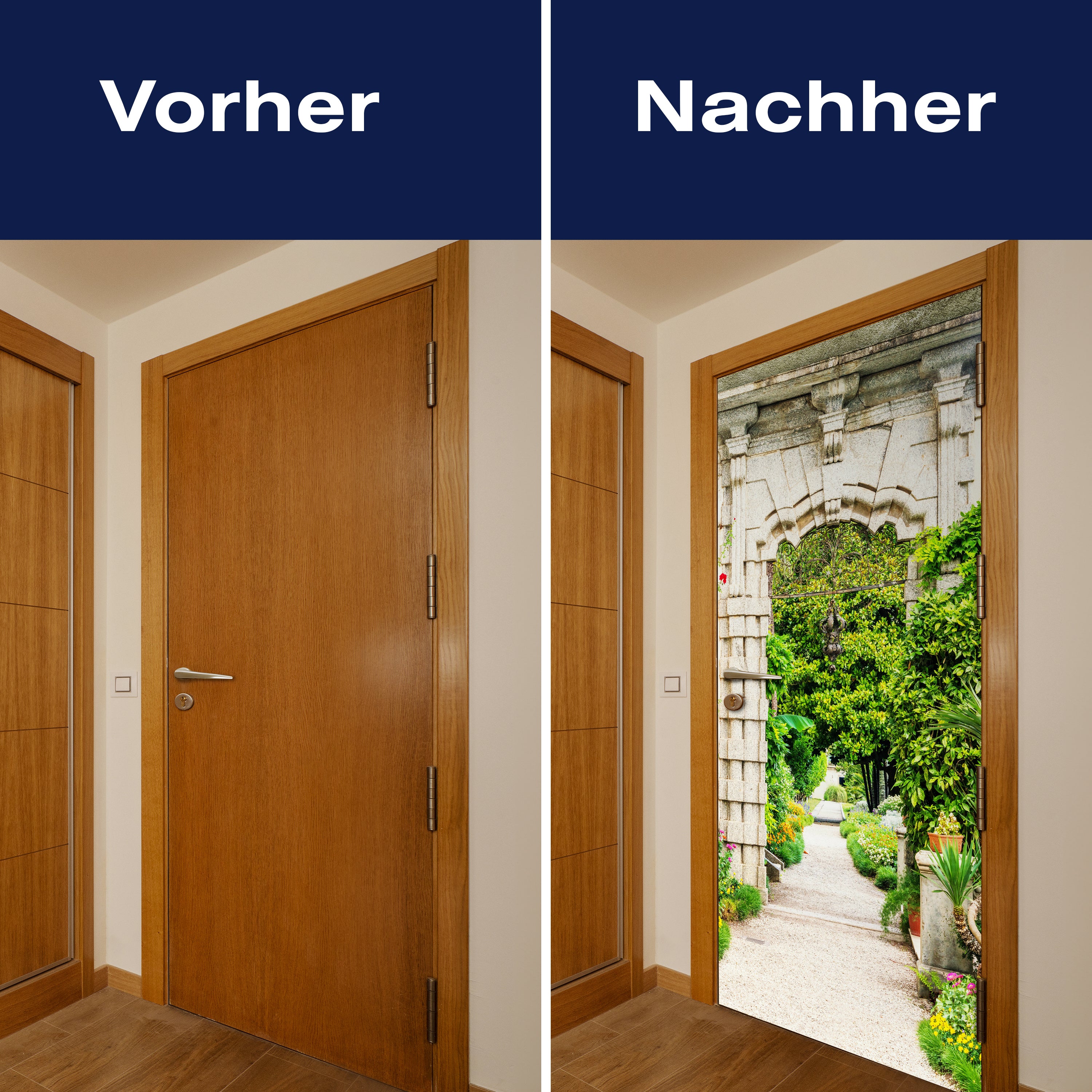 Hast du jemals darüber nachgedacht, wie eine einfache Veränderung deinen Wohnraum komplett umgestalten kann? Die Türtapete Steintor im Garten, Pflanzen, Bäume von Wandmotiv24 ist genau das, was du brauchst, um deinem Zuhause einen Hauch von Einzigartigkeit und Stil zu verleihen. Dieses einzigartige Design erzielt eine atemberaubende visuelle Wirkung, die jeden Betrachter in den Bann zieht.