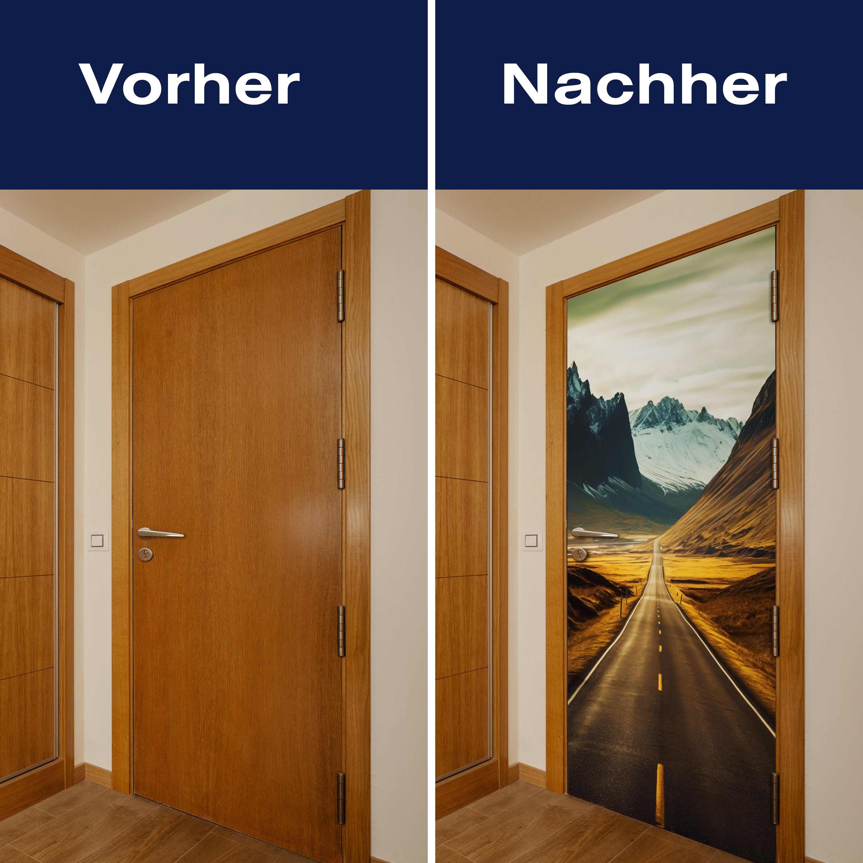 Mit unserer Türtapete verwandelst du jede gewöhnliche Tür in ein Kunstwerk. Ob du die Atmosphäre deines Wohnraums aufwerten oder deinem Haus einen neuen Charakter verleihen möchtest, unsere Türtapeten bieten eine einzigartige Möglichkeit, Veränderung zu gestalten. Lass dich von der Einfachheit der Anwendung begeistern und erlebe, wie deine Räume durch die Kraft des Designs und der Farbe transformiert werden.