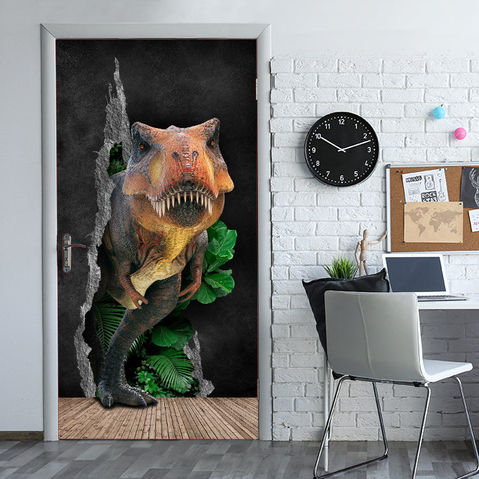 Entdecke die Türtapete T-Rex aus dem Dschungel, Dino-saurier